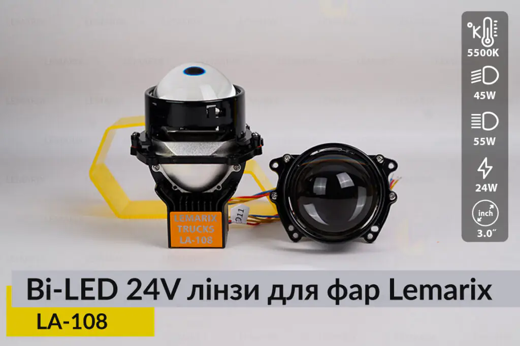 BI-LED 24V лінзи в фари Lemarix 108 для вантажних авто