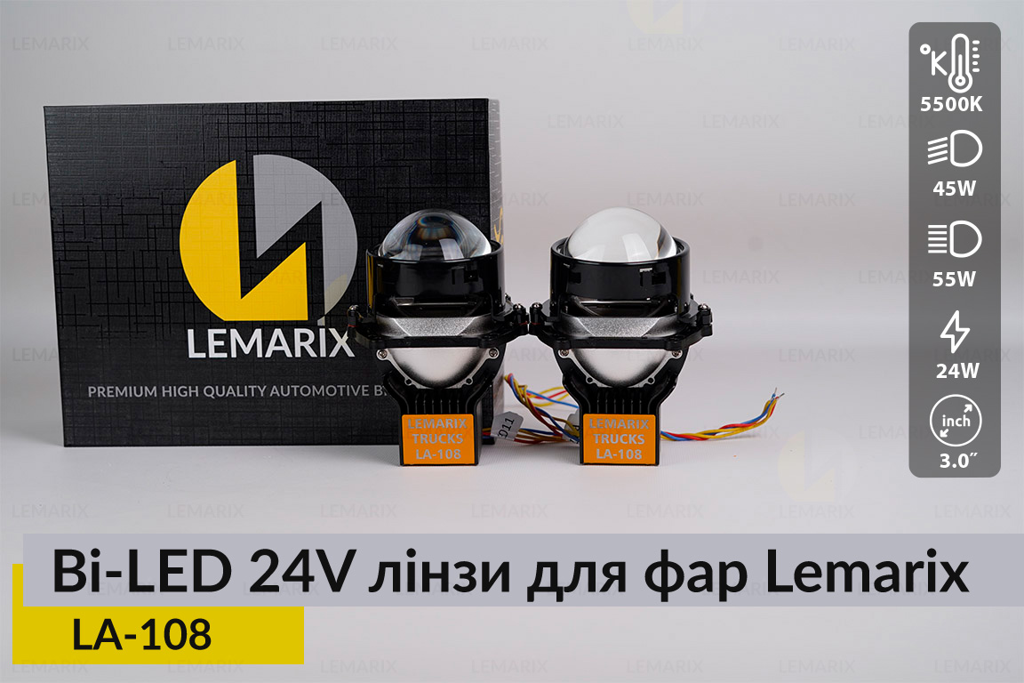 BI-LED 24V лінзи в фари Lemarix 108 для вантажних авто кількість