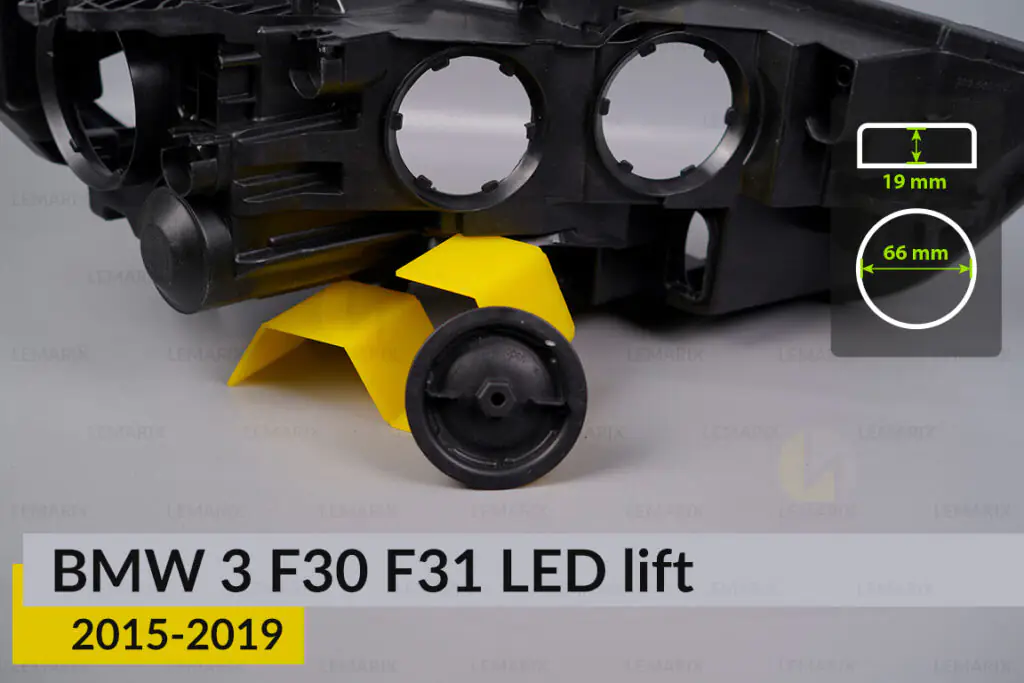 При встановленні світлодіодних ламп на БМВ 3 Ф30 Ф31 (в яких практично у всіх виступаючий радіатор), обов’язково встановіть захисну кришку-заглушку фар.