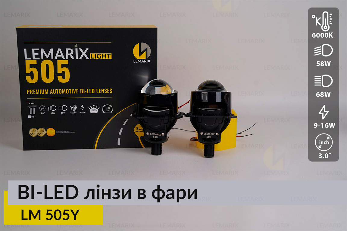 Світлодіодні Lemarix 505Y Bi-LED автомобільні лінзи 3" кількість