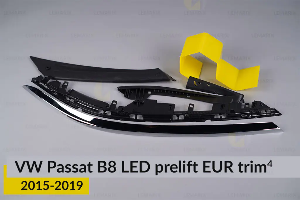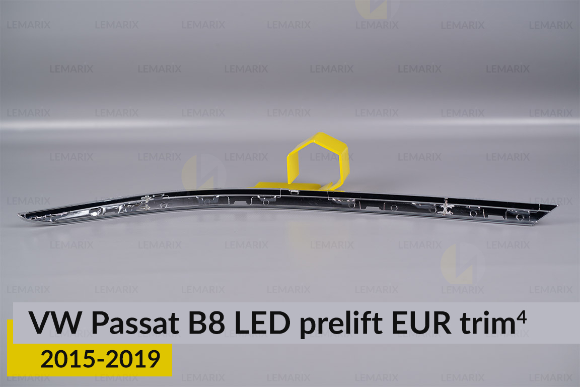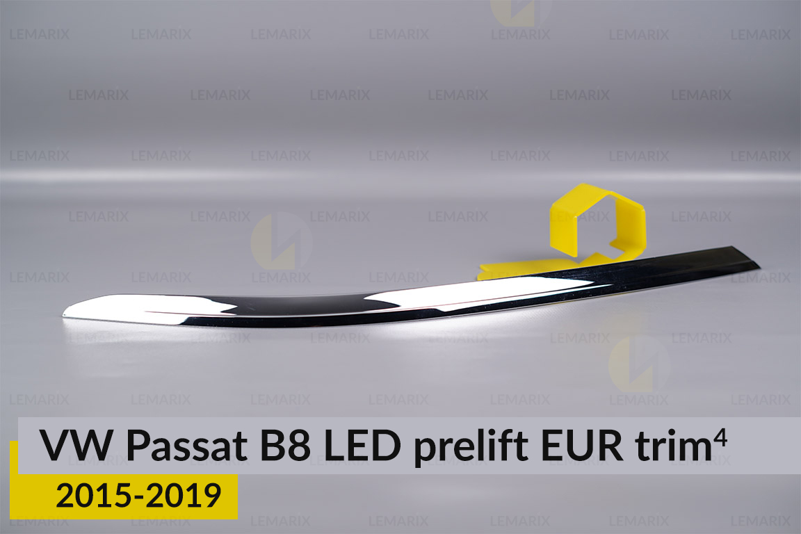 Хромированная накладка на фары VW Volkswagen Passat B8 LED EUR (2015-2019) дорест на 4 детали левая