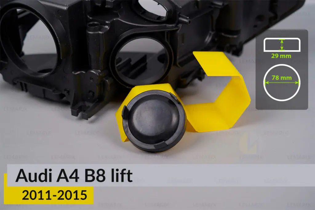 При встановленні світлодіодних ламп на Ауді А4 Б8 (в яких практично у всіх виступаючий радіатор), обов’язково встановіть захисну кришку-заглушку фар.